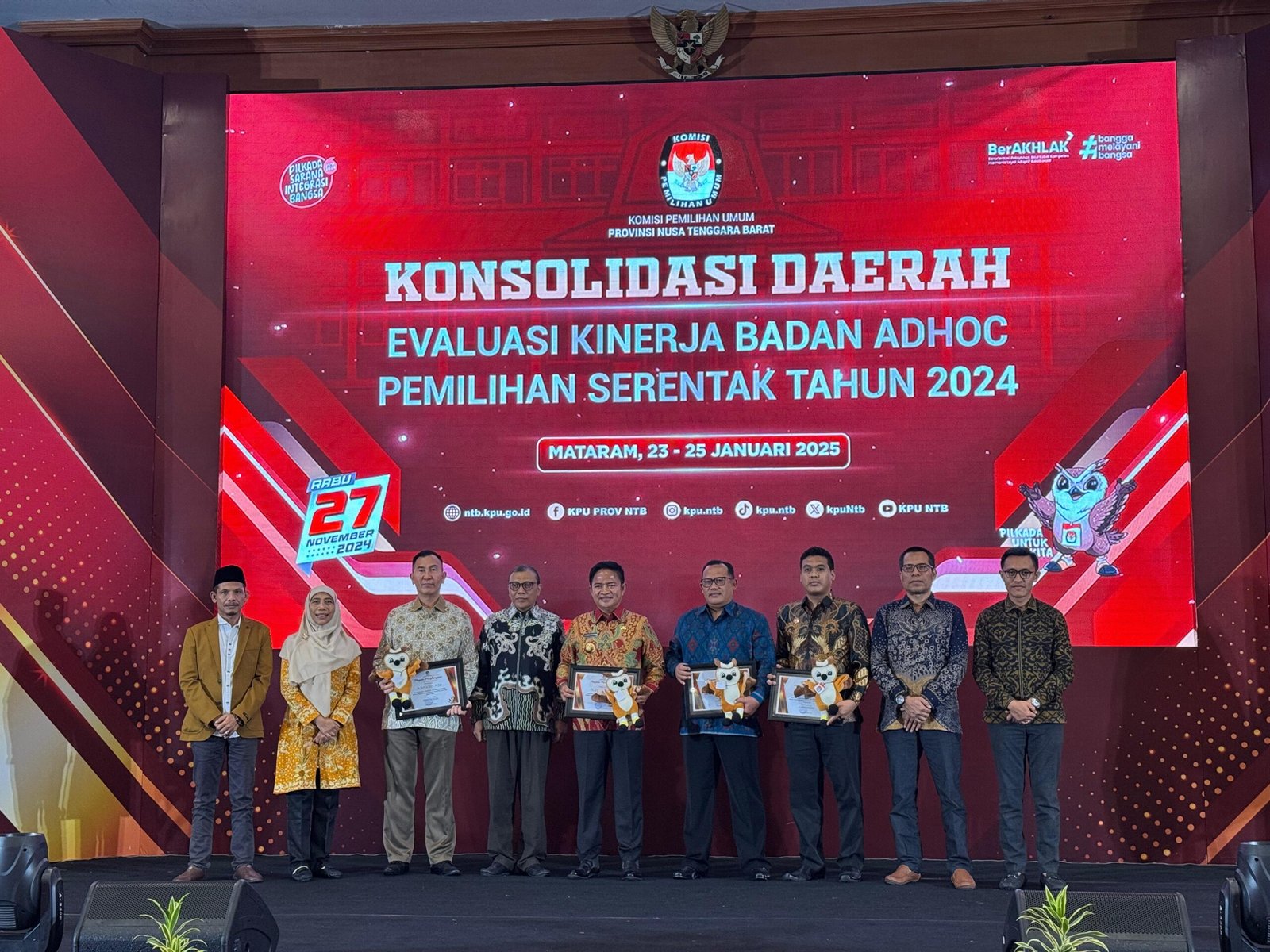 Penghargaan ini diserahkan langsung oleh Ketua KPU Provinsi NTB, Muhammad Khuwailid, S.Ag., M.H., kepada Karoops Kombes Pol. Abu Bakar Tertusi, S.I.K., S.H., M.Han. yang mewakili Polda NTB dalam acara Rapat Konsolidasi Daerah Evaluasi Kinerja Badan Ad Hoc Pemilu Serentak 2024 di Hotel Lombok Raya, Kota Mataram, Kamis (23/01/2025).