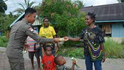Mimika, Papua Tengah – Dalam upaya mendukung tumbuh kembang anak-anak Papua agar sehat, cerdas, dan bahagia, personel Satgas Humas Operasi Damai Cartenz 2025 yang bertugas di Kabupaten Mimika menggelar aksi sosial dengan membagikan susu kotak kepada anak-anak yang mereka temui di sejumlah titik di Kota Mimika pada Senin (3/2).
