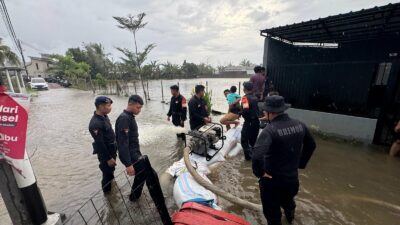 Mataram, NTB – Hujan deras yang mengguyur Kota Mataram pada Senin (10/2/2025) mengakibatkan banjir di Perumahan BTN Nata Alam 1, Desa Kuranji. Menyikapi kondisi tersebut, personel Batalyon A Pelopor Sat Brimob Polda NTB bergerak cepat membantu evakuasi warga serta barang berharga yang terdampak banjir.