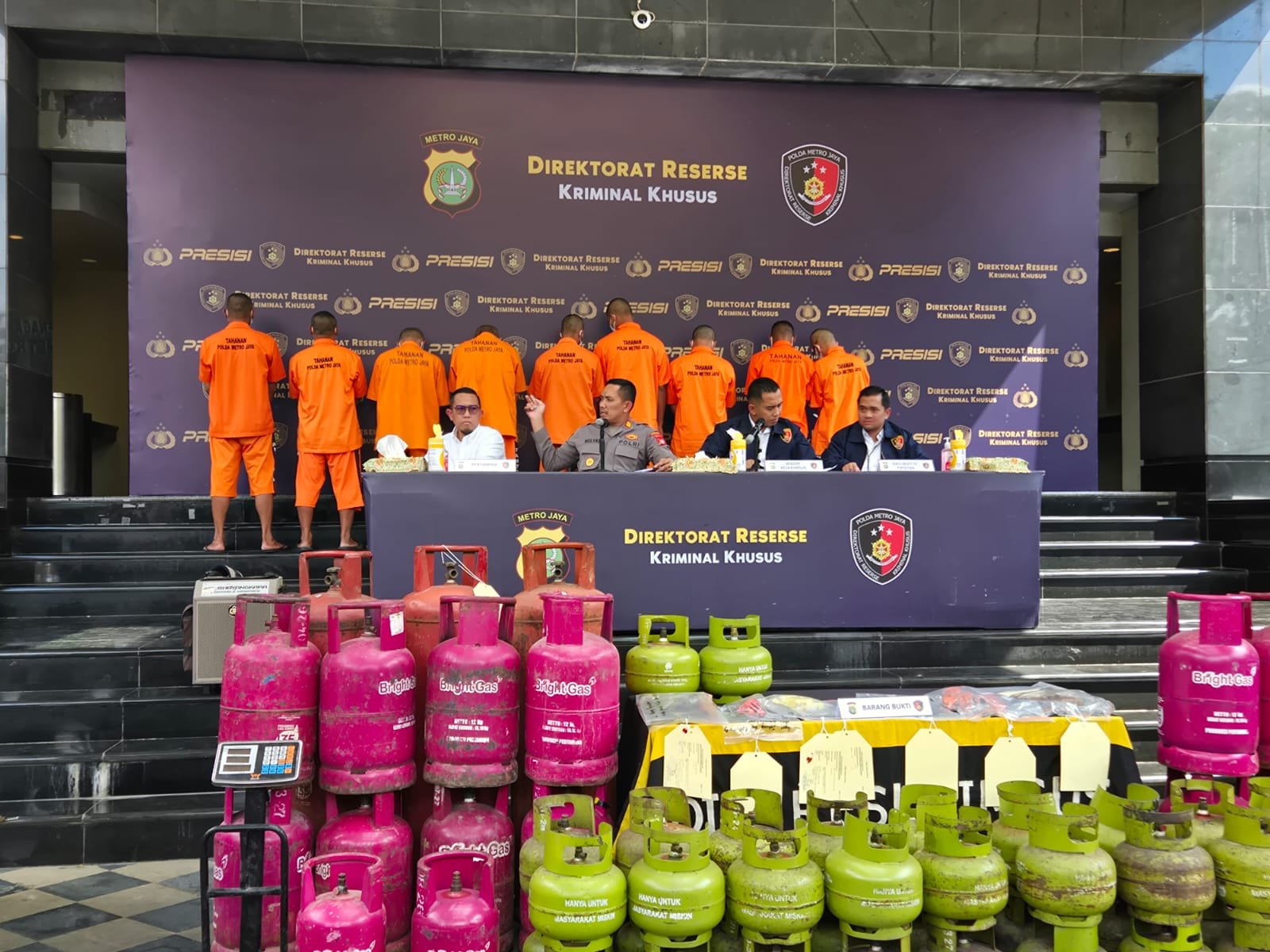 Jakarta, Penyidik Direktorat Reserse Kriminal Khusus (Ditreskrimsus) Polda Metro Jaya mengungkap kasus pengoplosan gas elpiji di daerah Bekasi, Jakarta Selatan, dan Jakarta Barat.