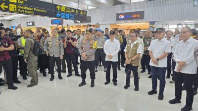 Jakarta – Kapolri Jenderal Listyo Sigit Prabowo melakukan pengecekan langsung pengamanan dan pelayanan arus mudik Lebaran 2025 di Bandara Soekarno Hatta (Soetta), Sabtu (29/3/2025). Peninjauan tersebut juga dilakukan bersama para Menteri dan pihak terkait lainnya.