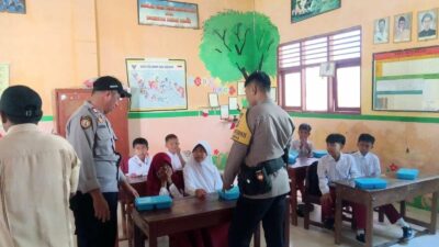 Personel Polsek Madapangga Polres Bima Polda NTB Mendampingi dan mengawal Program Makan Bergizi Gratis (MBG) di Wilayah Kecamatan Madapangga Senin, (21/4/25)