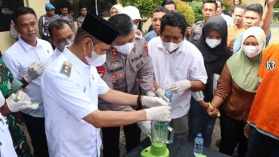 Selanjutnya 51,11 gram shabu hasil sitaan dimusnahkan dengan cara diblender dan dibuang ke TPA dengan turut disaksikan oleh segenap hadirin.