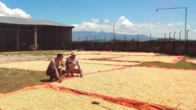 Bripka I Wayan Parwata Bhabinkamtibmas Polsek Woha Polres Bima Polda Sabtu 26 April 2025 menyambangi dan membantu proses penjemuran jagung warga binaan.