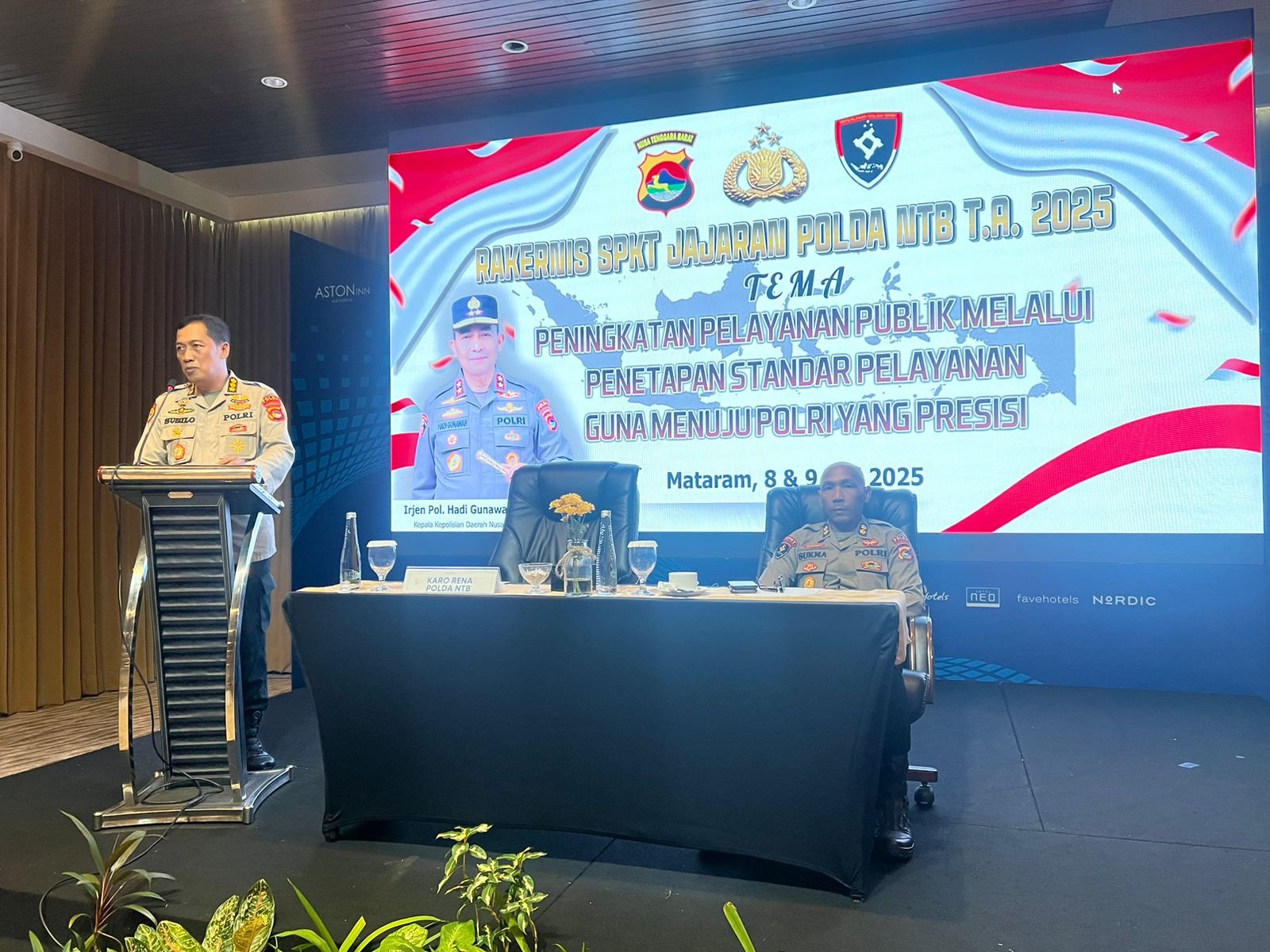 Rakernis ini mengusung tema: “Peningkatan Pelayanan Publik melalui Penetapan Standar Pelayanan Guna Menuju Polri yang Presisi.” Kegiatan ini diikuti oleh seluruh Kepala SPKT di lingkungan Polda NTB dan Polres/ta jajaran, sebagai bagian dari langkah strategis peningkatan kualitas pelayanan Kepolisian kepada masyarakat.