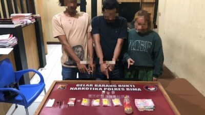Dua Pria dan satu wanita diamankan oleh Satreskoba Polres Bima terkait penyalahgunaan dan peredaran narkoba golongan saru dalam bentuk bukan tanaman yang diduga kuat narkoba jenis Shabu.