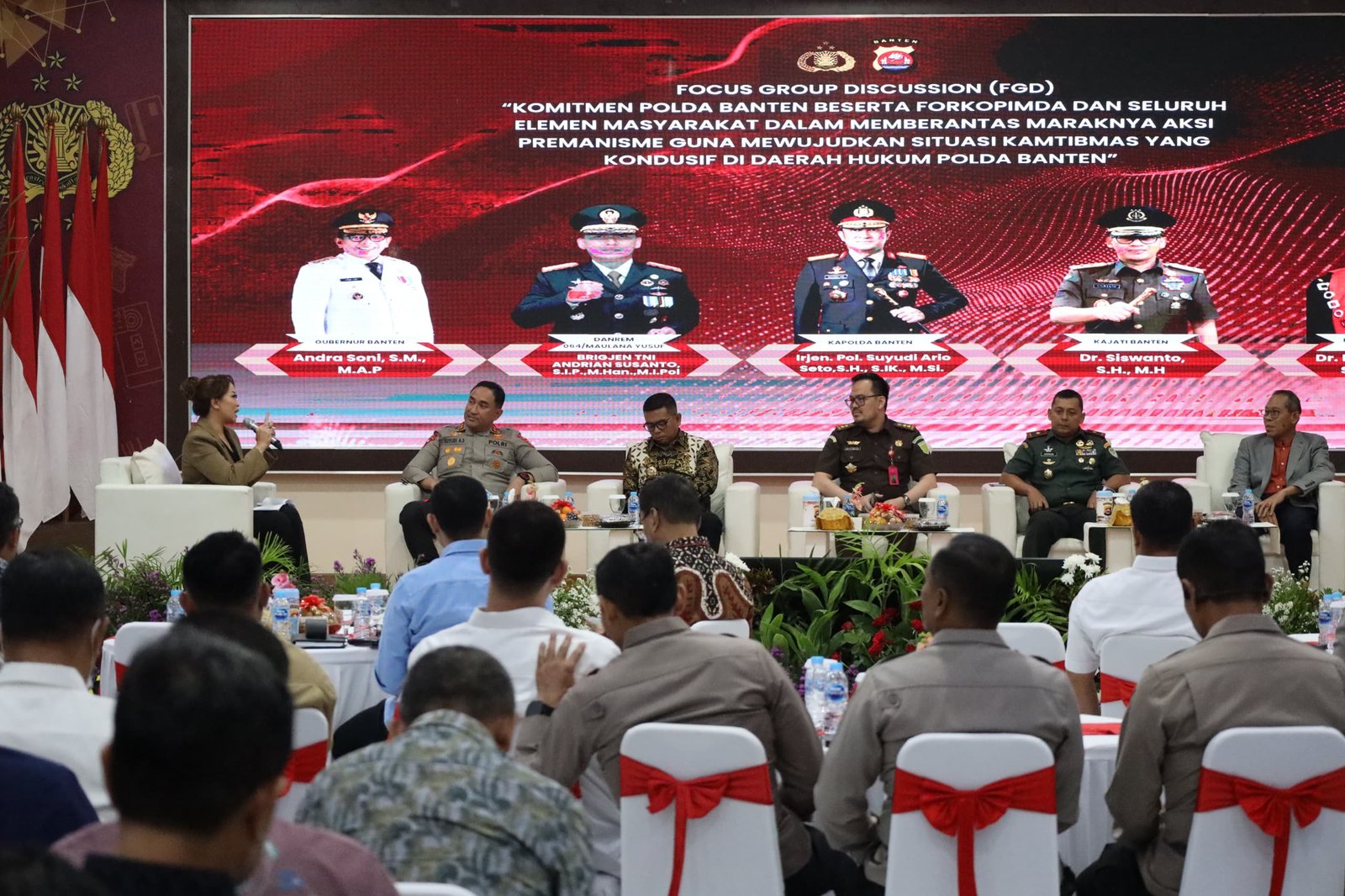 FGD ini mengangkat tema “Komitmen Polda Banten Beserta Forkopimda dan Seluruh Elemen Masyarakat Dalam Memberantas Maraknya Aksi Premanisme Guna Mewujudkan Situasi Kamtibmas yang Kondusif di Daerah Hukum Polda Banten”