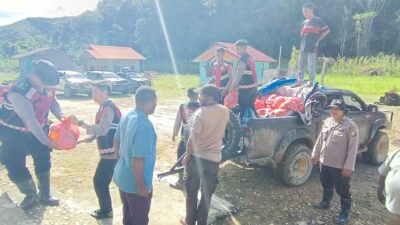 Manokwari, Papua Barat – Polres Pegunungan Arfak menyalurkan bantuan sosial berupa sembako kepada warga terdampak bencana tanah longsor di Kampung Jim, Distrik Catubouw, Kabupaten Pegunungan Arfak. Kegiatan penyaluran bantuan berlangsung pada Sabtu (24/5) pukul 10.00 WIT, bertempat di Gereja Jemaat Petrus Kampung Jim.