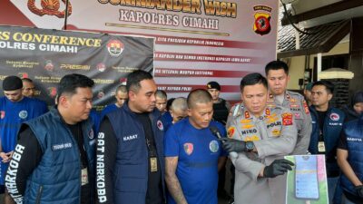 Satresnarkoba Polres Cimahi berhasil mengungkap kasus tindak pidana narkotika, Jumat (30/5/2025). Polisi berhasil manangkap satu pelaku yang merupakan salahsatu anggota ormas Grib Jaya PAC Parongpong, Bandung Barat.