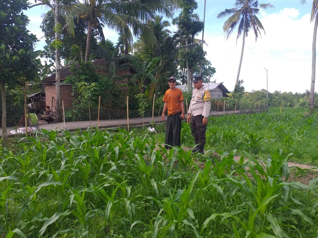 Selain DDS, Bhabinkamtibmas juga melakukan pemantauan progres pertumbuhan jagung hibrida merk Pioner di lahan milik Rumawit.