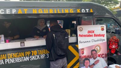 Wakapolda Jabar menyambangi sejumlah pelayanan masyarakat yang digelar seperti cek kesehatan gratis, pelayanan perpanjang Surat Izin Mengemudi (SIM) hingga Surat Keterangan Catatan Kepolisian (SKCK).