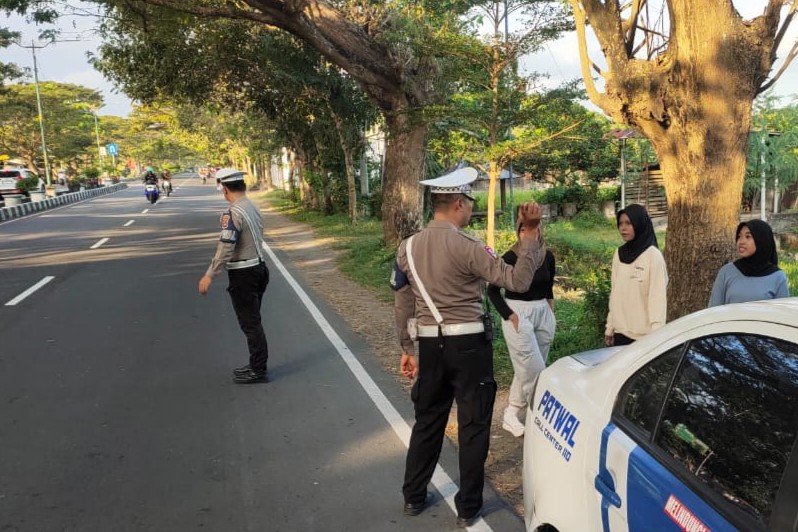 Memberikan edukasi singkat tentang pentingnya mematuhi rambu lalu lintas, menggunakan helm standar, dan tidak berkendara ugal-ugalan.
