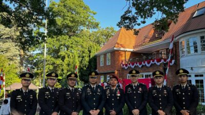 London. Dalam rangka memperingati Hari Ulang Tahun ke-80 Kemerdekaan Indonesia, para perwira Polri penerima beasiswa Lembaga Pengelola Dana Pendidikan (LPDP) turut ambil bagian dalam upacara bendera yang digelar di Kedutaan Besar Republik Indonesia (KBRI) London, Britania Raya.