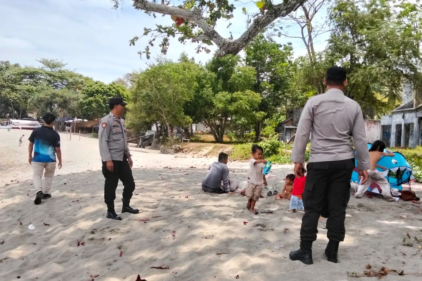 Selain berpatroli, personel kepolisian juga aktif memberikan himbauan kepada para pengunjung pantai. Pesan yang disampaikan sangat sederhana namun krusial: tetap waspada dan berhati-hati.