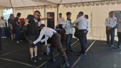 Mandalika— Kepolisian Daerah Nusa Tenggara Barat (Polda NTB), melalui jajaran Padal Pospam zona tengah Operasi Mandalika Rinjani 2025, Jumat (3/10/2025) mulai pukul 08.50 Wita, melaksanakan pemeriksaan orang dan barang di pintu masuk utama (Gate-1) Pertamina Mandalika International Circuit.