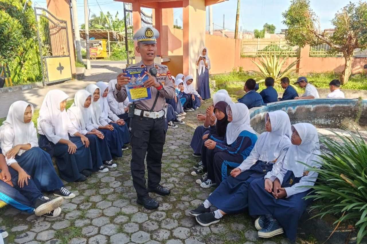Materi yang disampaikan mencakup pengenalan rambu-rambu lalu lintas, bahaya berkendara tanpa Surat Izin Mengemudi (SIM), pentingnya menggunakan helm standar SNI, serta imbauan tegas agar pelajar yang belum cukup umur untuk tidak menggunakan sepeda motor di jalan raya. Pendekatan yang humanis namun lugas digunakan untuk memastikan pesan keselamatan ini terserap dengan baik oleh para remaja.