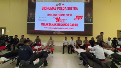Bid Humas Polda Sultra Gelar Donor Darah Serentak dalam Rangka HUT Humas Polri ke-74