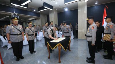 Jakarta. Kadivhumas Polri Irjen. Pol. Sandi Nugroho memimpin upacara serah terima jabatan (sertijab) sejumlah pejabat di lingkungan Humas Polri.