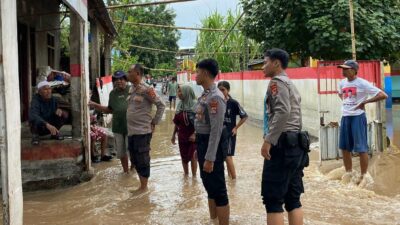 Sigap dan Cepat Satsamapta Polres Bima Polda NTB membantu warga yang terdampak banjir dan membantu warga mengevakuasi pohon tumbang